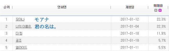 (*モアナは)「君の名は。」ほどではないのに。 - どこかの韓国人 2017.01.12 08:08:19