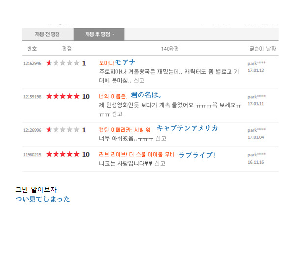 「君の名は。」が1位でなければいけないのが、当たり前。 - どこかの韓国人 2017.01.12 04:36:40